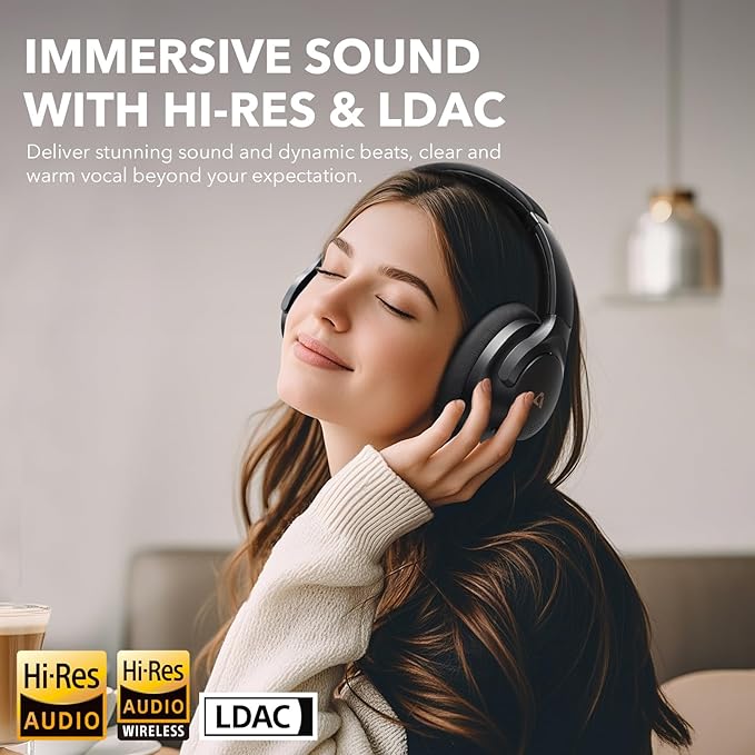 - LDAC& CERTIFIED HI-RES AUDIO : 1Mii Y8+ wireless anc headphones deliver the studio-grade music with Hi-Res audio and LDAC technology. The 40mm drivers deliver rich, detailed sound with a balanced performance, from deep, resonant lows to crystal-clear highs, letting you hear every note exactly as it was meant to be heard