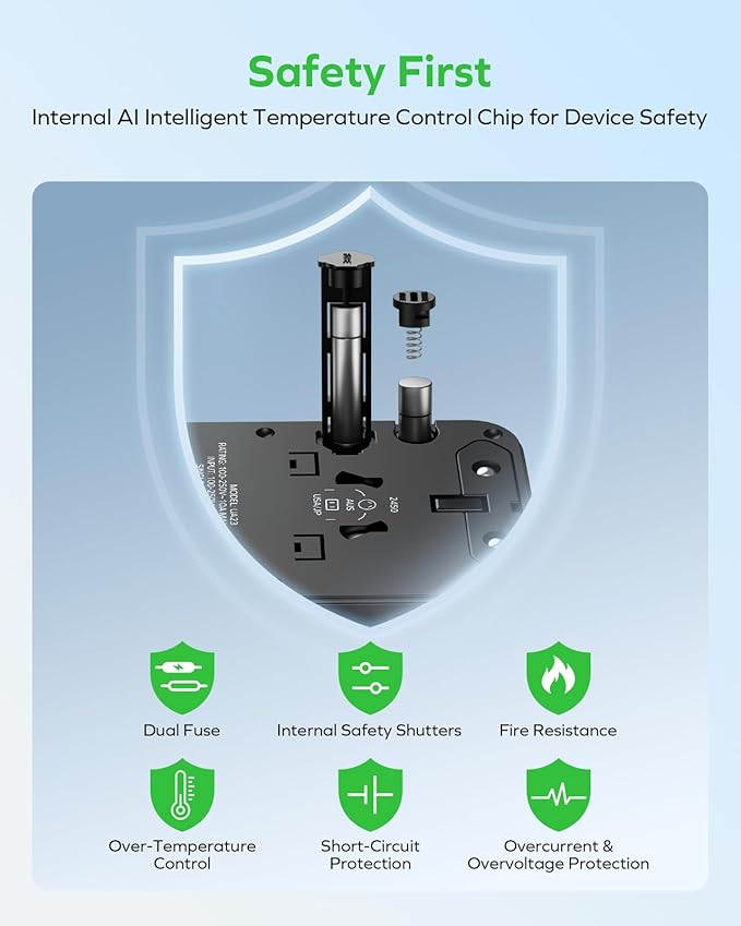 - Safety travel adapter - MOMAX multi-conversion plugs are ROHS, CE and FCC certified and are made of GaN-cooled and fireproof PC material with multiple protection functions (overheat, overcurrent, overcharge, short circuit protection, overpower protection, overvoltage protection, overdischarge protection) and a built-in 10A fuse to ensure safety during use. [Please note that our adapter does NOT convert voltage]