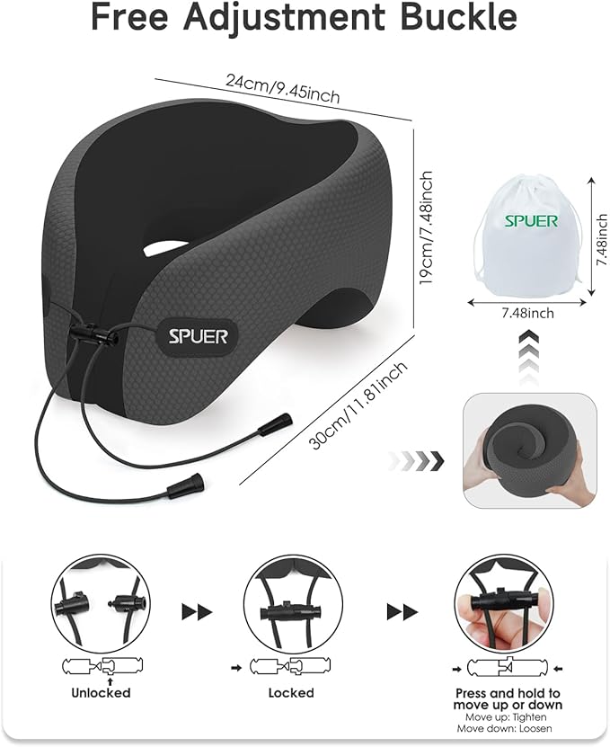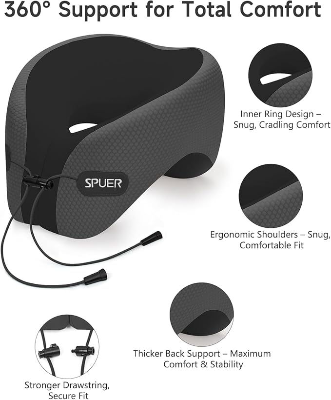 - 360° Neck Support for Pain-Free Travel: This travel pillow is made with high-density memory foam and offers 360° support for your head, neck, and chin. Whether you're using it as a neck pillow airplane or a cushion for road trips, it relieves pressure and improves posture for a more comfortable journey