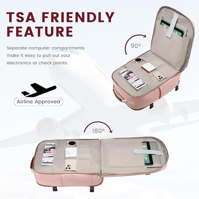 - 【BACKPACK FOR TRAVELING ON AIRPLANES】With an 18*14*8 inches size, this travel backpack meets the standard of personal item bags of airlines. It can be put on the luggage set and under the seat easily. The luggage strap on the back of the backpack allows it to be stably attached to a suitcase.