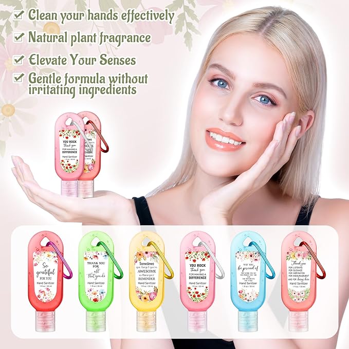 - Bulk Appreciation Hand Sanitizer: these appreciation small hand sanitizer travel size come in 24 pieces, 4 of each of 6 styles, in 1 oz/ 30 ml bottles that are easy to carry in a pocket or purse; These adorable gifts feature stylish appreciation elements such as thank you and encouraging sentences, adds unexpected joy and elegance to any party decoration