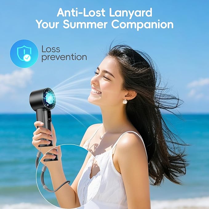 - Pocket-Sized, Feather-Light:Weighing just 0.48 lbs, this ultra-compact fan feels incredibly light and fits comfortably in the palm of your hand. At only 6.1 inches tall, it's even smaller than a smartphone, making it easy to hold and use. Slip it into your pocket, bag, or travel kit for convenient cooling on the go