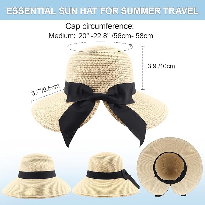 • Design: The wide-brimmed sun hat is small and compact with slit design, the bow hatband makes the hat more adorable, keeping you cool, comfortable and stylish on hot days.