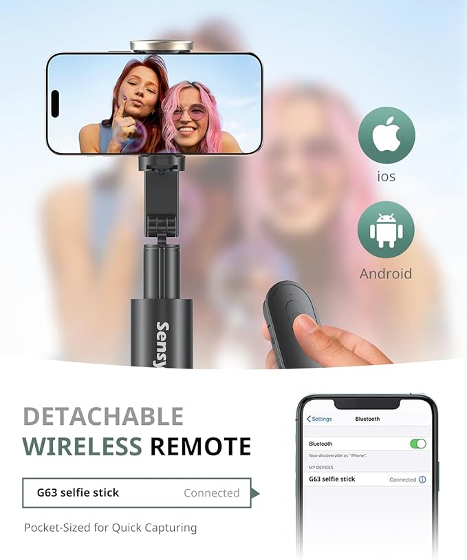 - Versatile 2-in-1 Design: The Sensyne phone tripod merges a selfie stick and tripod into one sleek tool, letting you capture solo or group shots effortlessly. Its compact folding design makes it easy to carry anywhere, perfect for travelers and content creators