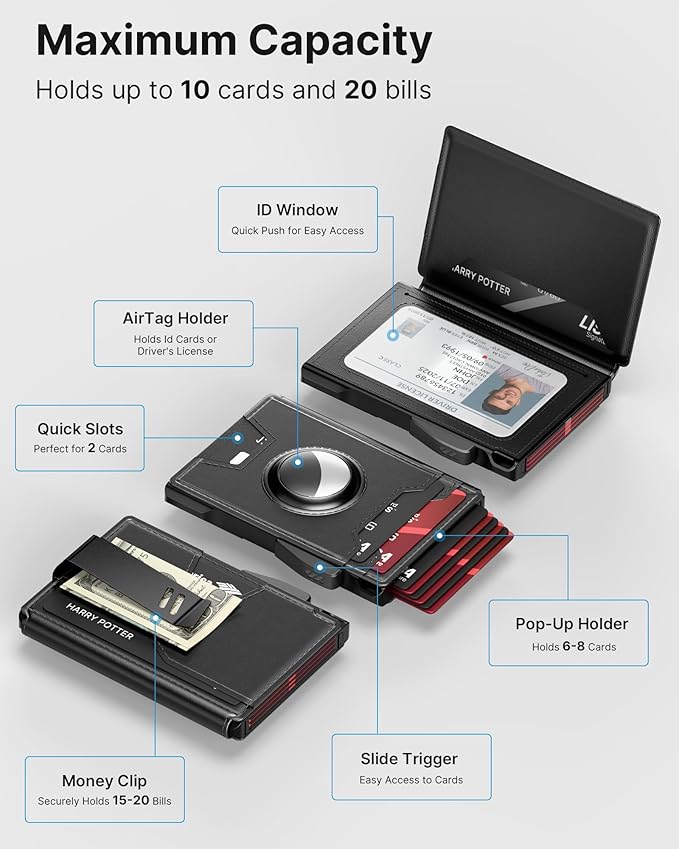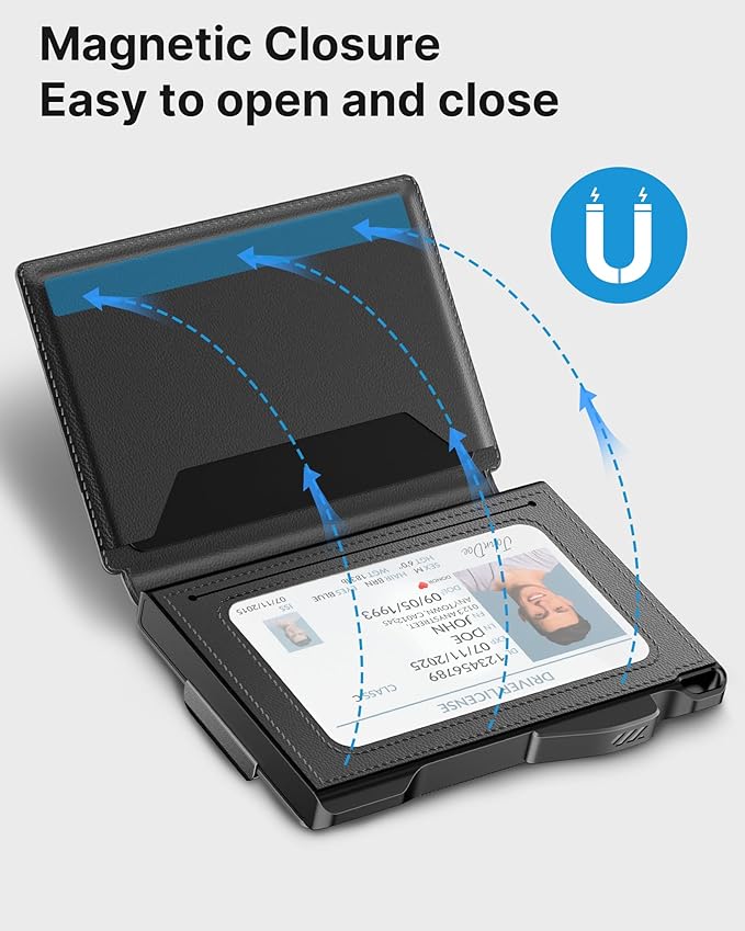 - 【QUICK CARD ACCESS】Tired of fumbling around with your wallet to find the right card? This men's wallet features a pop-up card case that can hold up to 6 cards, and the desired card can be quickly accessed with the press of a button. No more holding up the line at the checkout!