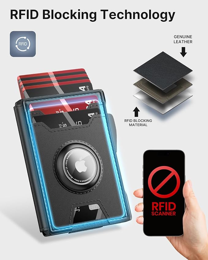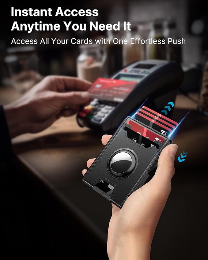 - 【SECURE AIRTAG HOLDER】Do you worry about losing your belongings when you're out and about? This wallet is designed with AirTag holes, so you can attach an AirTag to help you keep track of your wallet. The AirTag holder is secure and prevents the AirTag from drawing out, giving you peace of mind.