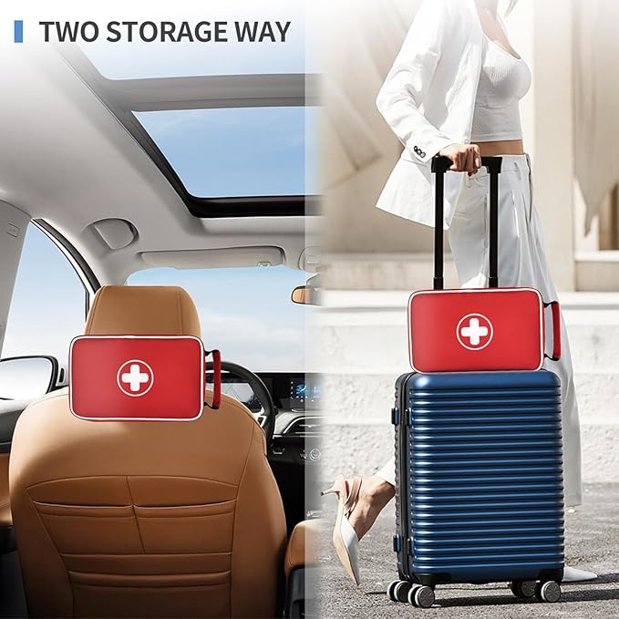 - 【RUGGED & RELIABLE FOR ANY ADVENTURE】: Built with tough 1680D polyester fabric, this first aid kit offers excellent tear-resistance and water-resistant protection, keeping your supplies safe in various conditions. The sturdy double-zipper design ensures secure closure, while the comfortable handle allows for easy carrying. Enhanced with reflective piping for quick identification in low-light situations, this durable kit is perfectly suited for home, vehicle, outdoor activities, and emergency preparedness.