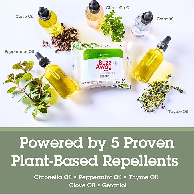 Quantum Health Buzz Away Extreme DEET Free Insect Repellent Wipes - Travel-Friendly Citronella Oil Mosquito & Tick Outdoor Bug Repellent Towelettes, Kids & Adults - 20 Individual Wipes