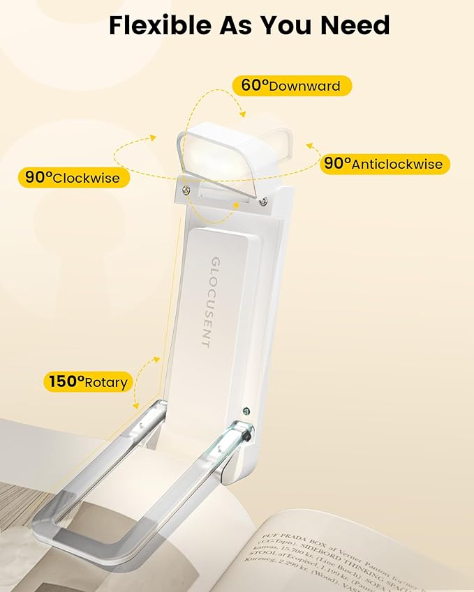 - [Glocusent Commitment] 1. Original patent applied. 2. FCC, CE, RoHS, PSE, C-TICK approved. 3. Worry-free 24 months warranty and friendly customer service. 4. Purchase contains 1*book light for reading at night, 1* bookmark, 1*user manual. Note: Do not turn the light head too hard to the left or right beyond 90°, as it contains a power cord inside.