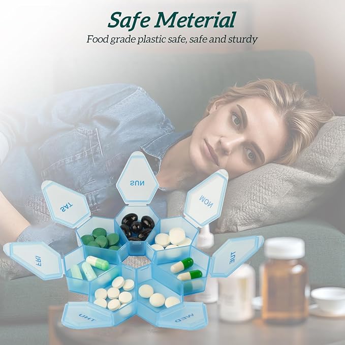 - Easily plan out your week ahead with this 7-day pill box, ensuring you never forget to take your important pills and supplements.