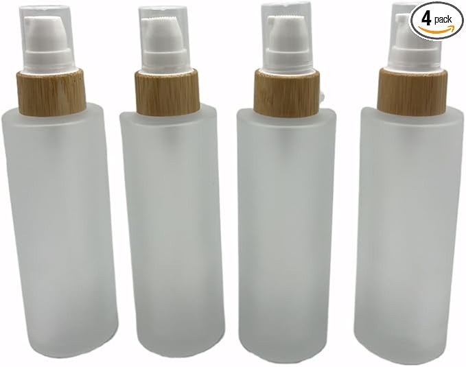 - Material: Glass body;Capacity: 80ml/2.6oz.Package included:4 frosted glass bottle with lotion pump.