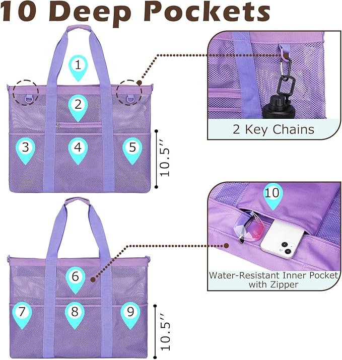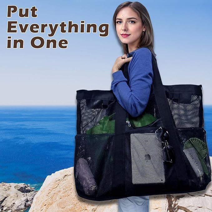 - ๐๏ธใ๐๐๐ซ๐ฌ๐๐ญ๐ข๐ฅ๐ ๐๐จ๐ซ ๐๐ฅ๐ฅ ๐๐๐๐๐ฌ๐ข๐จ๐ง๐ฌใPerfect for beach days, vacations, picnics, pool trips, camping, or even grocery shopping. This multi-purpose mesh beach bag doubles as a travel tote bag, swim bag, gym duffel, towel bag, shower caddy, or shopping bagโkeeping everything neat and organized.