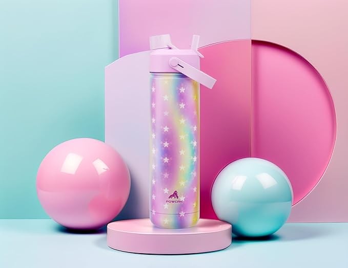 POWCAN 26 oz Insulated Water Bottle with 2-in-1 Straw and Spout Lid, Keep Cold 24H, Leak-Proof, Fits in Car Cup Holder, Stainless Steel Water Bottle for Sports, Travel, and School (Starlight Cascade)
