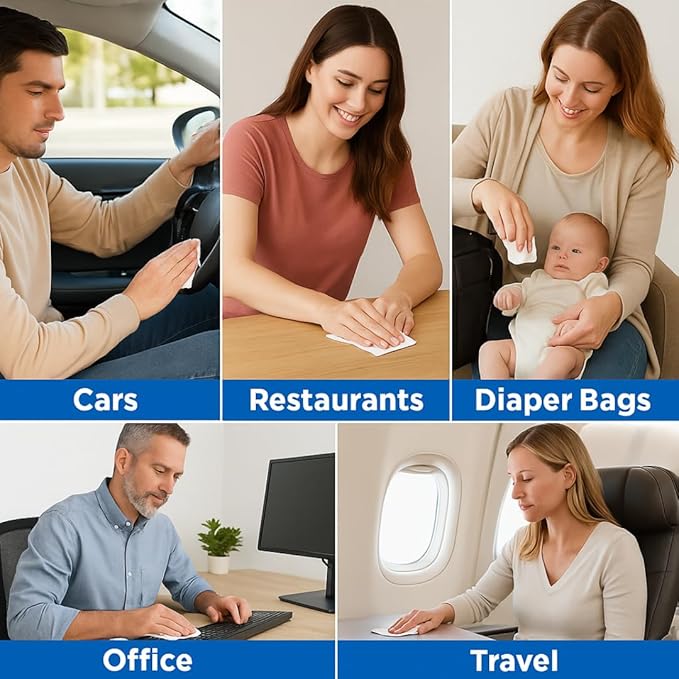 - TRAVEL-FRIENDLY PACKS: Resealable adhesive seal keeps wipes fresh longer than standard lids. Perfect alcohol wipes travel packs for cars, diaper bags, and travel size needs.