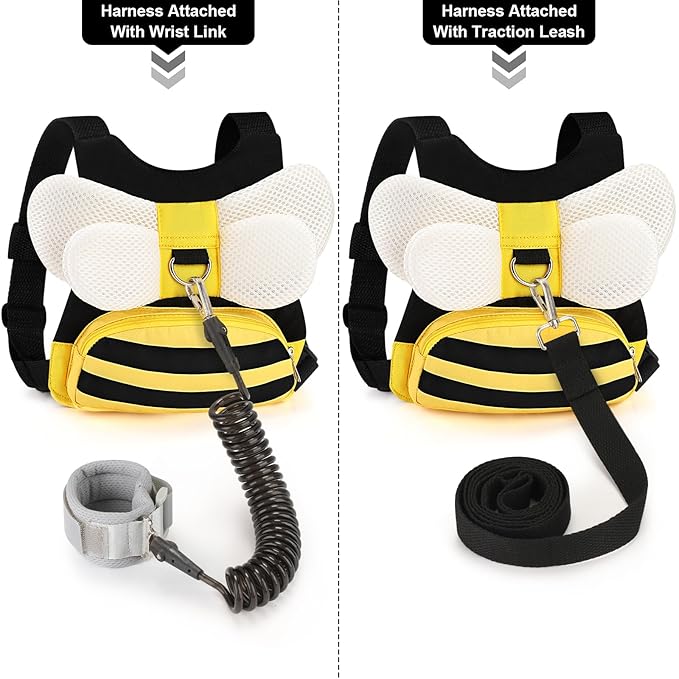 Accmor Toddler Harness Leash + Anti Lost Wrist Link, Cute Bee Kids Harness Backpack with Leash, Child Harness Leash Safety Wristband Strap Belt Protector Christmas Gift for Baby Boys Girls to Outdoor