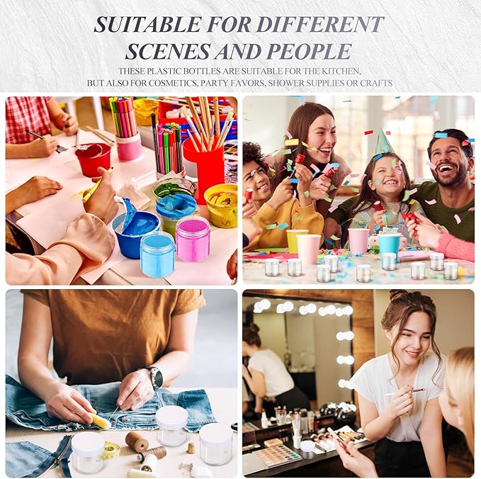 - What can you get: you will get 36 packs clear plastic round storage jars with lids, they are durable and can be applied to store paste-like, liquid and solid objects