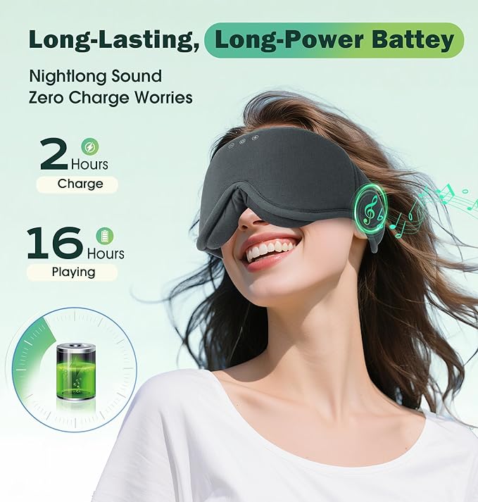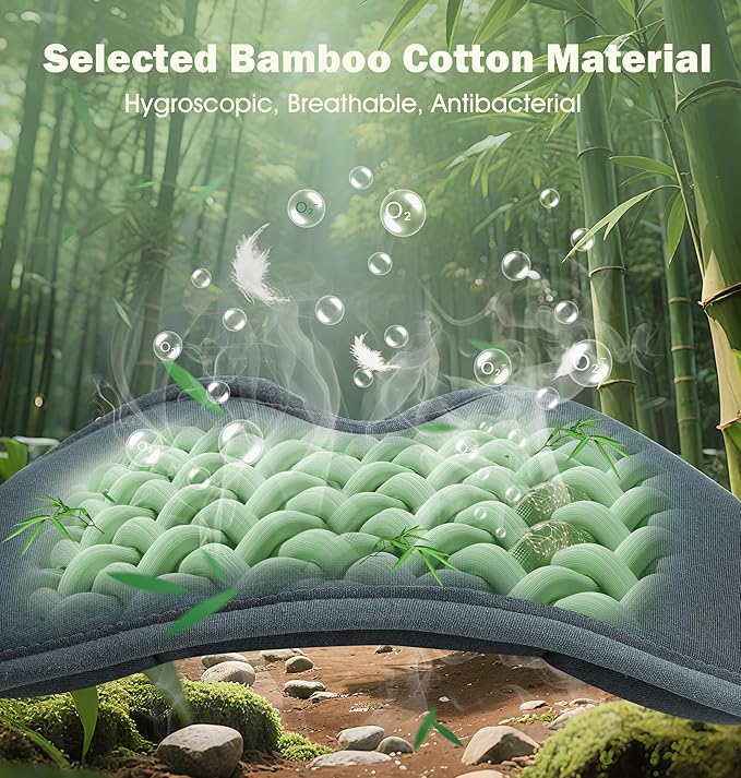 - 🌙 100% Light Blocking & Breathable Fit: Engineered with 3D ergonomic shaping, this bluetooth sleep mask blocks all light without squeezing your face. Plus, bamboo fiber wicks sweat 3x faster than cotton – stay cool and dry all night.