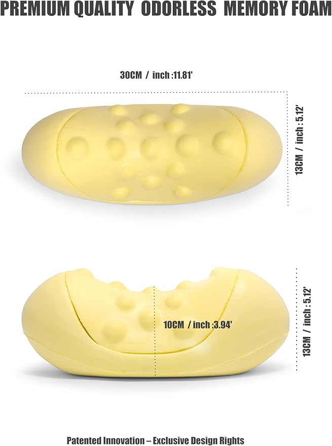 - [Relief neck pain in just 10 minutes]Our cervical spine curve design matches the cervical spine, offering vertical, horizontal support, and curvature stretch for neck traction. This positions the head to reduce spinal pressure, support the cervical spine, and help the C-shaped curve of the neck.