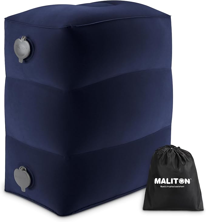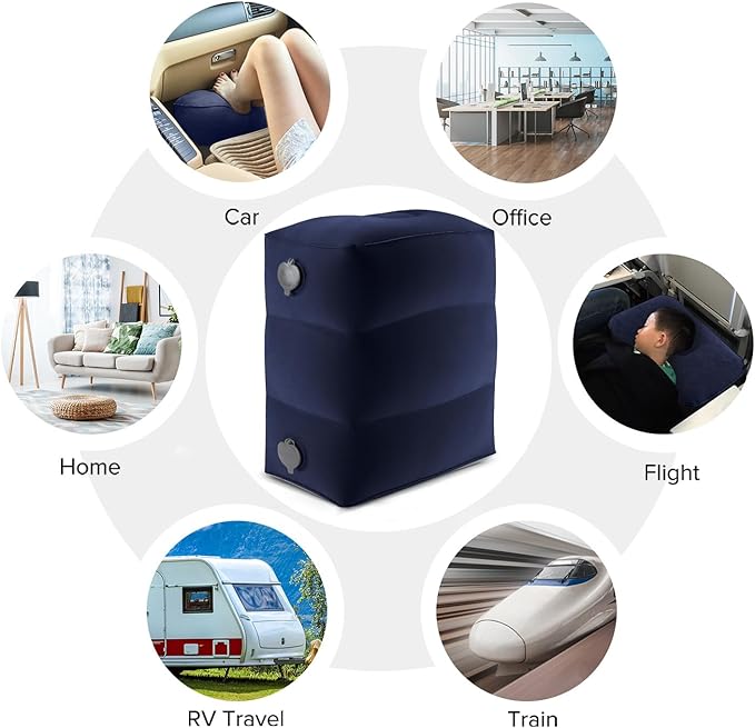 Inflatable Travel Foot Rest Pillow, Kids Airplane Bed, Adjustable Height Leg Pillow for Air Travel, Make a Flat Bed for Kids and Toddlers, Great for Airplane, Train, car(Blue, 1 Pack)
