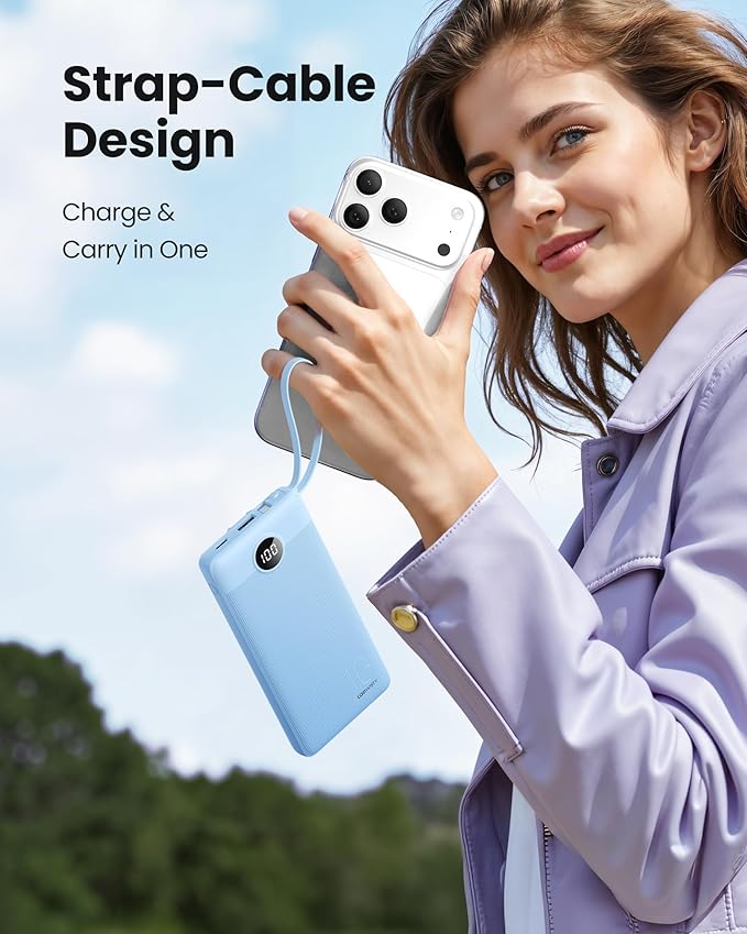- 【Micro USB Game-Changer】Extend it to charge Micro USB devices, then retract it into a handy lanyard for easy carrying. Whether you're gripping it on the go or hanging it from your bag, this portable charger combines convenience with effortless style for seamless travel and daily use.