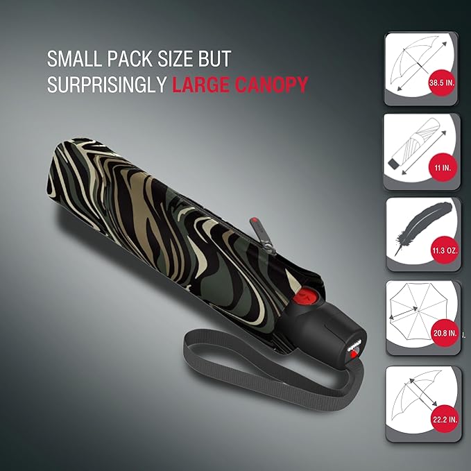 Knirps T.200 Duomatic Compact Rain Umbrella in Tiger Oak – Wind Tunnel Tested to 93 mph, Aluminum Steel Fiberglass Frame, 38in Canopy, OEKO-TEX, High-Performance Automatic Travel Umbrellas
