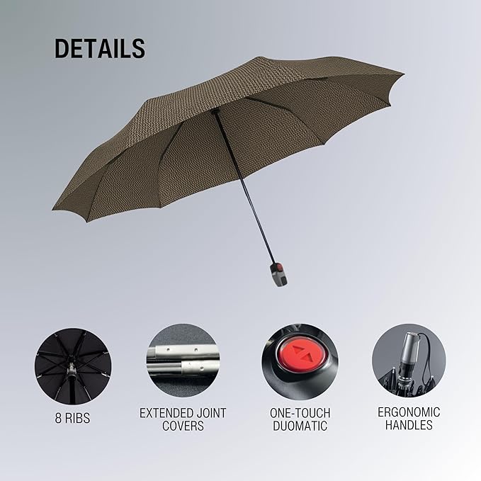 - One-Touch Duomatic Open & Close – Featuring an advanced Duomatic automatic mechanism, this umbrella opens and closes with a single button press—ideal for quick entry or exit during downpours. No fuss, no delay—just precision performance with every use.