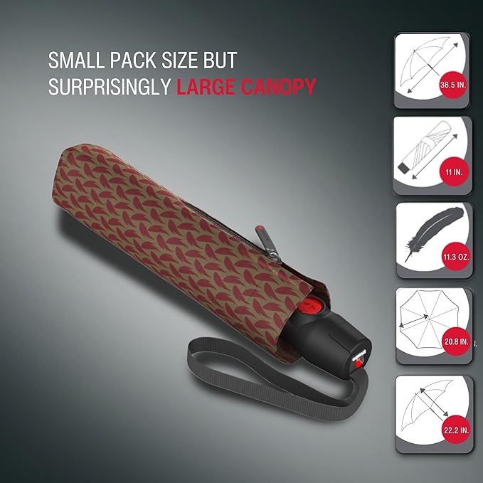 Knirps T.200 Duomatic Compact Rain Umbrella in Elemental Cinnamon – Wind Tunnel Tested to 93 mph, Aluminum Steel Fiberglass Frame, 38in Canopy, OEKO-TEX, High-Performance Automatic Travel Umbrellas