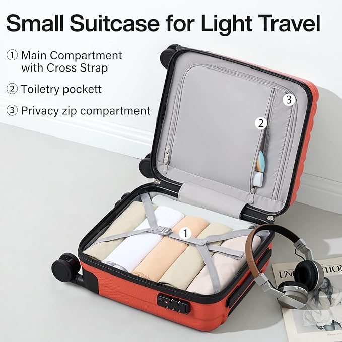 Hanke 14 Inch Underseat Carry On Luggage with Wheels Hard Shell Suitcases Lightweight Small Luggage for Weekender Mini Suitcase Carry On Bag Travel Luggage for Travel Rolling Suitcase.(Orange)