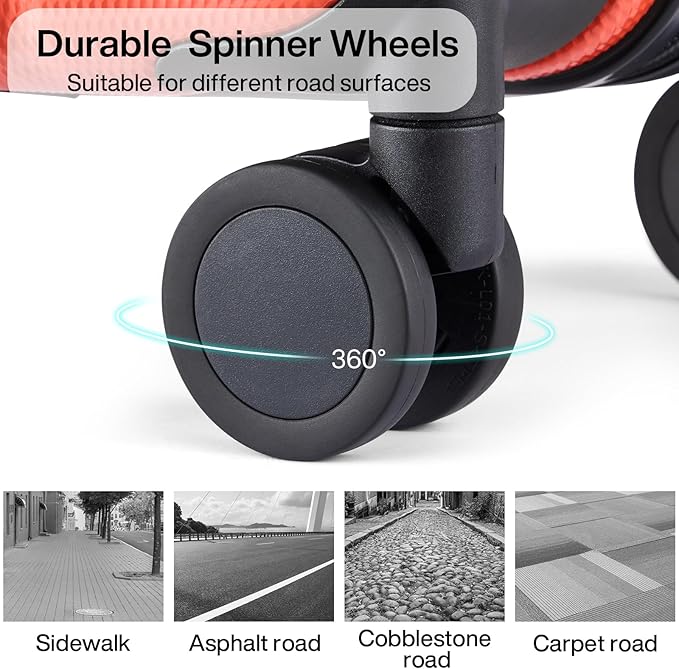 - 【High Quality Accessories】SJ . TOBOL durable spinner wheels,It is composed of precision shaft center and thickened TPE wheel skin, which is very wear-resistant,quieter and has strong bearing capacity, It is applicable to different roads such as cobblestone road and carpet road. Smooth and durable 5-strand reinforced explosion-proof zipper reverse coil prevents burst zipper. Travel-approved combination lock is safe and convenient. Ergonomics telescopic handle with multi-steps adjustment.