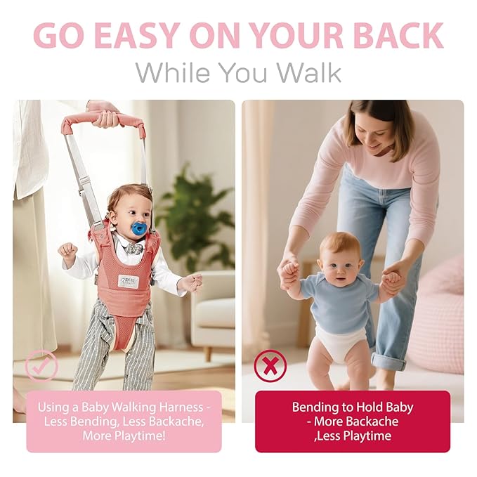 - Parent-Back Protection & Comfort:Say goodbye to stooping-induced back pain!Make your life easier and bid goodbye on painful backaches from leaning and bending over while holding your baby’s hands. With this walking harness, you can easily assist your baby’s walking without breaking your back.