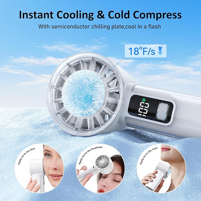 - 【Instant Cooling with Cold Compress】COMLIFE handheld fan with ice cooler utilizes advanced semiconductor cooling technology, featuring a 1.2*1.2-inch cooling chip that can lower the temperature by 18°F in just 1 second. Perfect for instant relief from the heat,ensuring you stay cool and comfortable all summer long