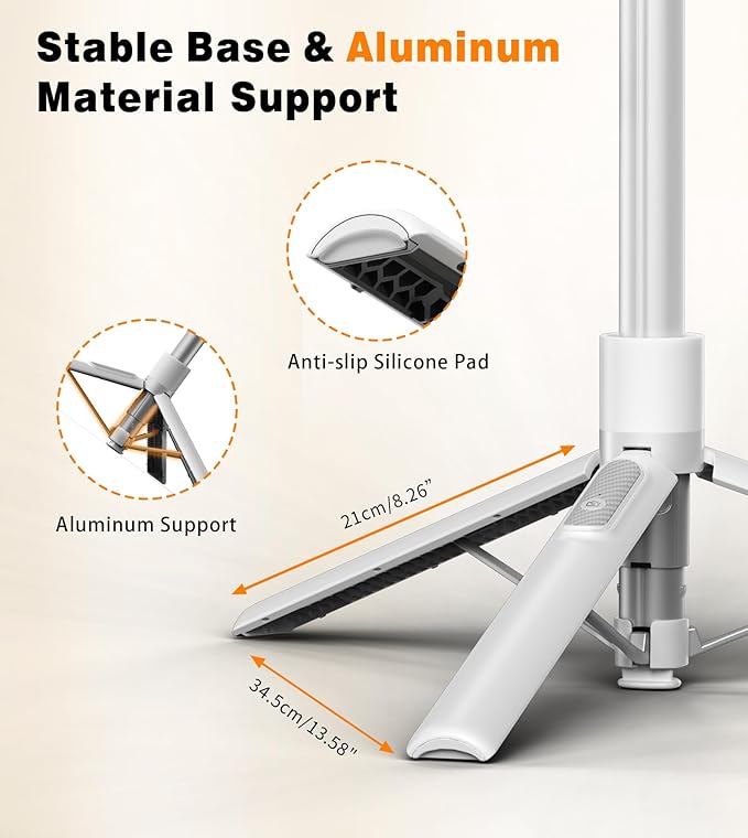 TONEOF 68" Magnetic Selfie Stick Tripod with Aluminum Strong Magnetic Holder for Magsafe, 360° Rotatable Travel Phone Tripod Stand with Metal Ring & Rechargeable Remote for iPhone/Android(White)