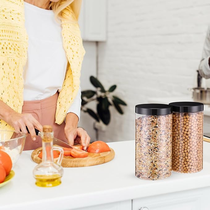 SATINIOR 12 Pack 32 oz Plastic Container Jars with Lids Round Clear Travel Cosmetic Container Slime Jars for Toiletries, Lotion, Cream, Ointments, Makeup, Rhinestone, Samples, Kitchen Storage(Black)
