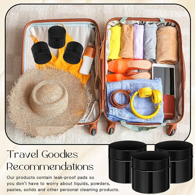 SATINIOR 12 Pack 2 oz Plastic Container Jars with Lids Round Clear Travel Cosmetic Container Slime Jar for Toiletries, Lotion, Cream, Ointment, Makeup, Rhinestone, Sample, Kitchen Storage(Pure Black)