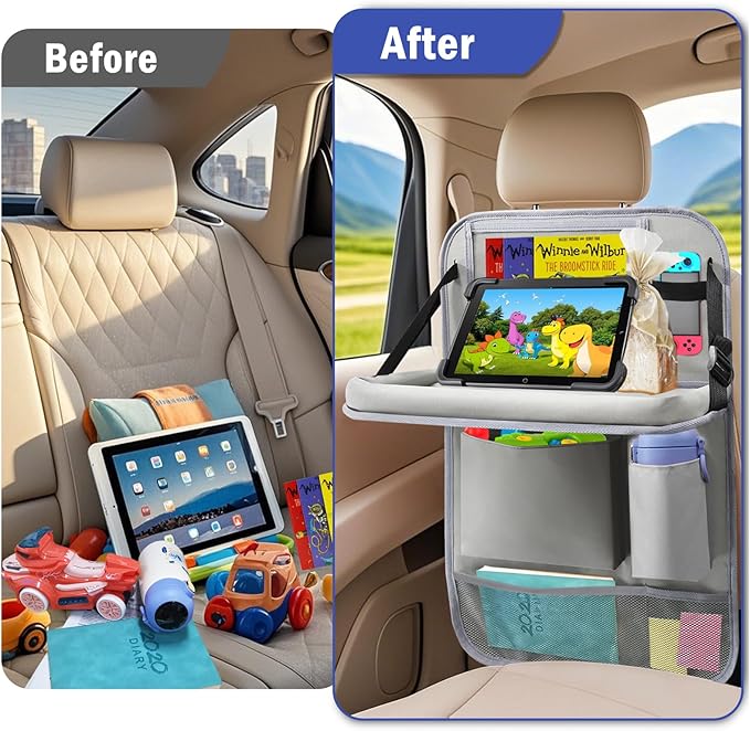 - Easy To Install : Adjustable straps,aluminum hooks,and sturdy fasteners ensure the stability of the back seat car organizer for kids.The installation is straightforward and can be completed soon.