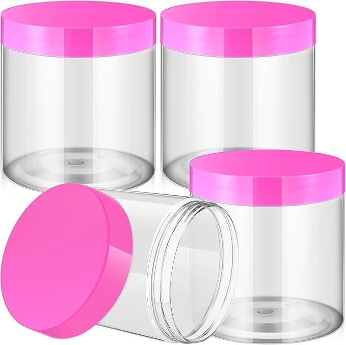 SATINIOR 12 Pack 16 oz Plastic Container Jars with Lids Round Clear Travel Cosmetic Container Slime Jars for Toiletries, Lotion, Cream, Ointments, Makeup, Rhinestone, Samples, Kitchen Storage(Pink)