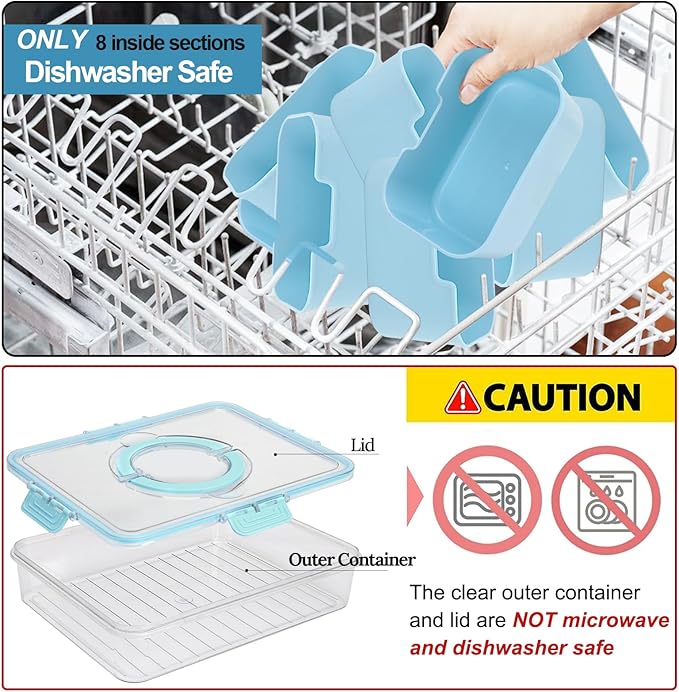 - NOTE: ONLY INNER DIVIDERS ARE DISHWASHER SAFE. The outer container and lid need hand wash with water below 60 ° C( 140℉).