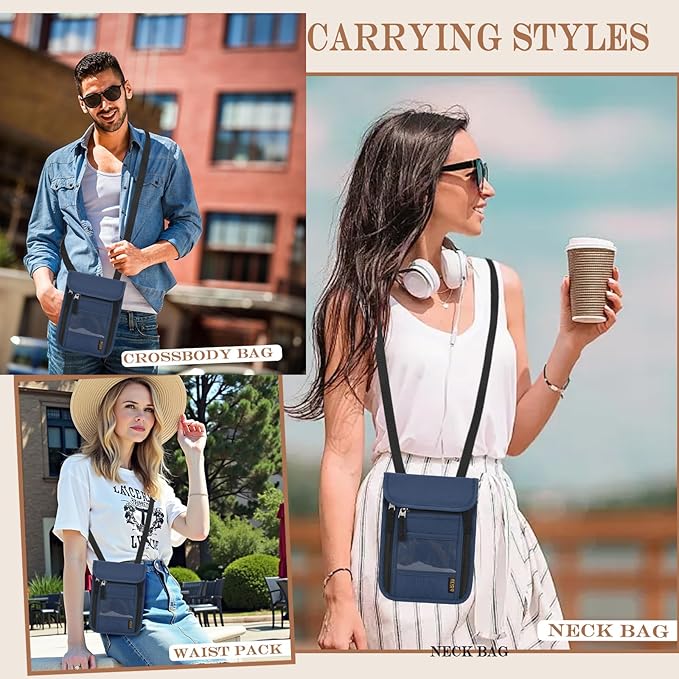 - Convenient Carrying: Our travel pouch is equipped with adjustable hooks, straps and buckles. You can hang it around your neck, waist or under your clothes. The neck wallet is safe and comfortable to carry, suitable for both men and women
