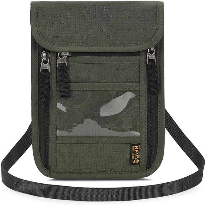 Passport Holder for Travel, Neck Pouch Travel Wallet With RFID Blocking, Waterproof Lightweight Passport Wallet for Women and Men (Army Green)