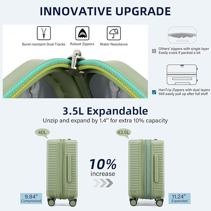 - 【Durability & Lightweight】Adopting double-layer zippers to ensure reliable water / burst resistance and robust / smooth zipper track grip, the luggage carry on feature ultra-strong PC hardshelll textured surface, scratch resistance, impact resistance, lightweight but high load-bearing capacity. Reinforced aluminum luggage handle adjusts smoothly without wobbling or cracking issues. Ideal for hardside carry on luggage with wheels, travel luggage, small rolling suitcase durability seekers.