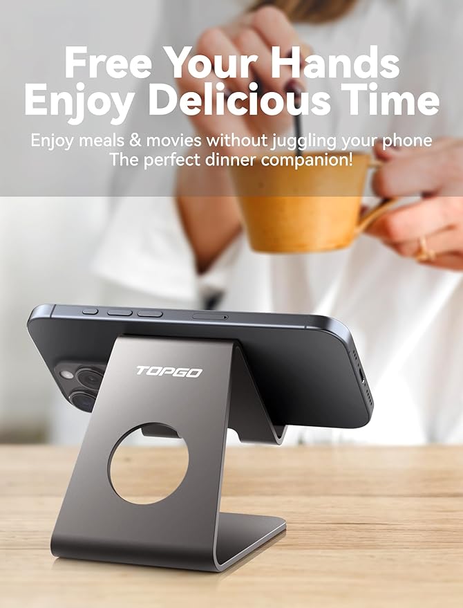 - [Portable life]: The phone cradle can relieve neck fatigue, free your hands, which is a good desk accessory while watching the video on YouTube, Facebook, Instagram, TikTok, reading recipes when cooking and have facetime with your family & friends, playing games, making a phone call.