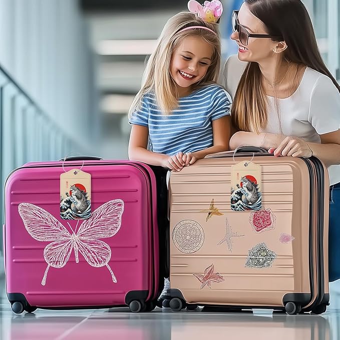 Funny Japanese Cat Luggage Tag, Suitcase Tags with Privacy Flap and Metal Loop, Luggage Tags for Suitcases, Identifiers Travel Essentials Bag Tag, Cat Lovers Gifts for Women Girls Friends