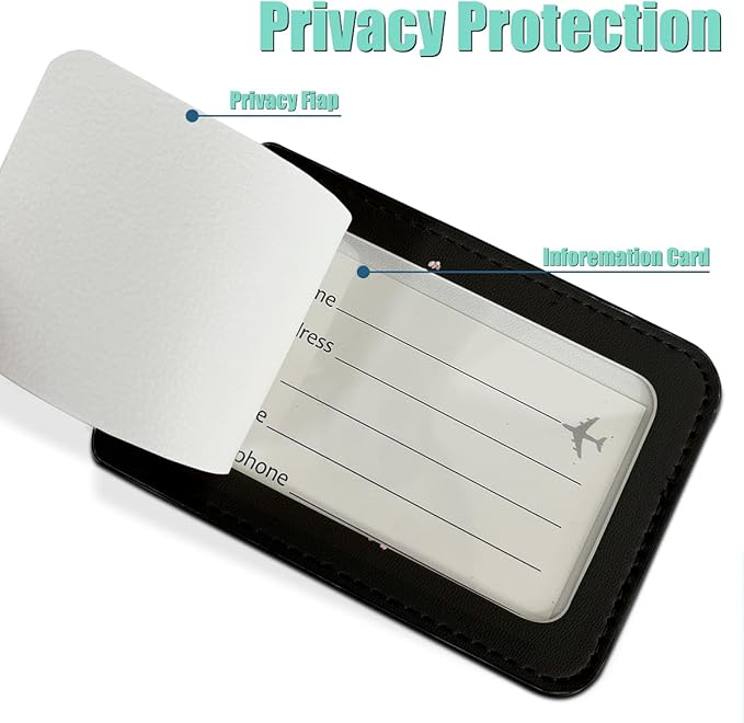 - IDENTIFICATION AND PRIVACY PROTECTION: There is a privacy cover with a back cover on the back of the Identifiers tag, which can transmit the owner's name, contact information and address, so that your luggage can be quickly recovered after loss, while protecting privacy, avoiding prying eyes, improving security, so that you do not have to worry about personal information disclosure.
