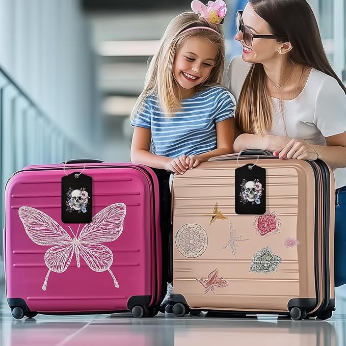 Floral Skull Luggage Tag, Suitcase Tags with Privacy Flap and Metal Loop, Gothic Luggage Tags for Suitcases, Identifiers Travel Essentials Bag Tag, Travel Gifts for Women Girls Friends