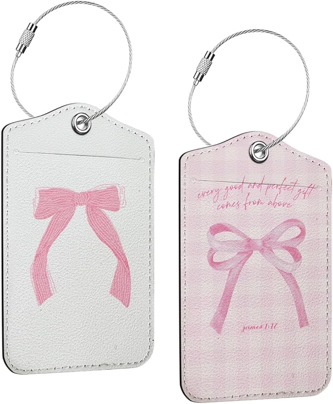 2 PCs Bible Verse Luggage Tag, Preppy Bow Suitcase Tags with Privacy Flap and Metal Loop, Coquette Luggage Tags for Suitcases, Identifiers Travel Essentials Bag Tag, Christian Gifts for Women Girl