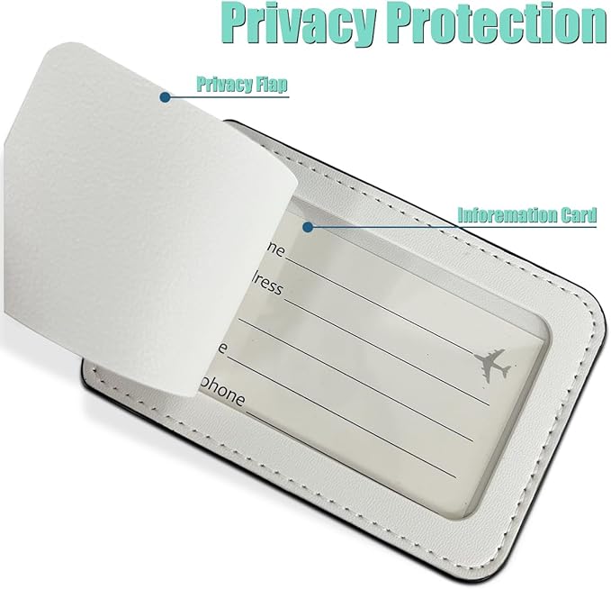 - IDENTIFICATION AND PRIVACY PROTECTION: There is a privacy cover with a back cover on the back of the Identifiers tag, which can transmit the owner's name, contact information and address, so that your luggage can be quickly recovered after loss, while protecting privacy, avoiding prying eyes, improving security, so that you do not have to worry about personal information disclosure.