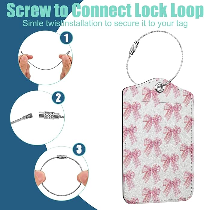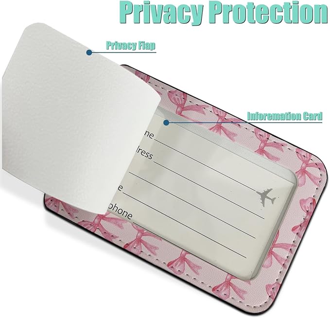 2 PCs Preppy Bow Luggage Tag, Suitcase Tags with Privacy Flap and Metal Loop, Coquette Luggage Tags for Suitcases, Identifiers Travel Essentials Bag Tag, Preppy Gifts for Women Girls Friends