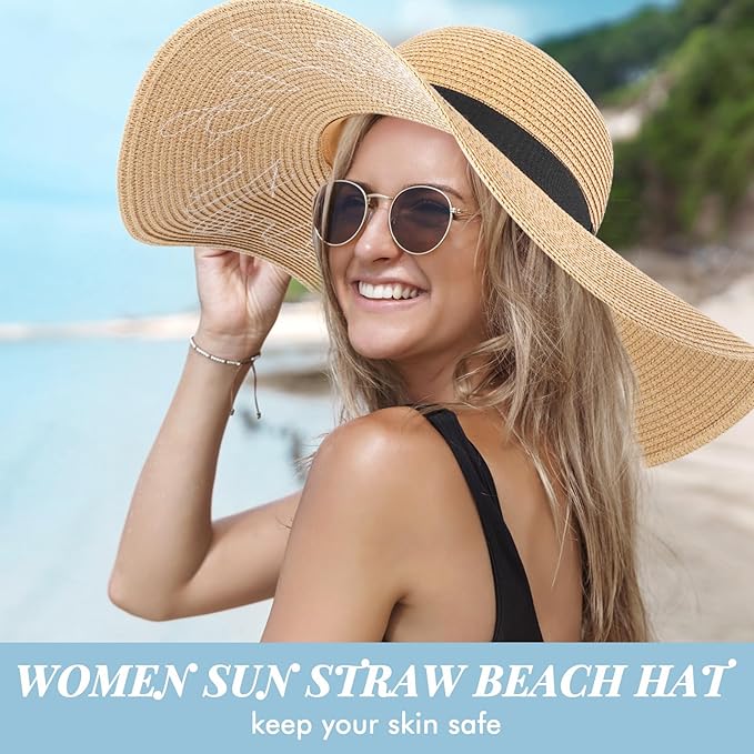 Beach Sun Hats for Women Wide Brim Straw Foldable Beach Hat UV Protection