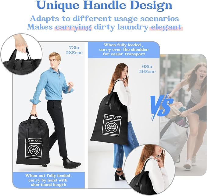 MissBoy Heavy Duty Laundry Bag, Machine Washable Nylon, Splash-Resistant Dirty Clothes Storage Bag with Drawstring & Handles丨Lightweight, Foldable & Space-Saving for College Dorm,Vacations&Trips, 80L