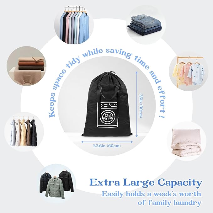 - 80-120L Large Capacity : Sized 23.6" x 35"in, lightweight & foldable, folds down to palm-sized,saving space and keeping your laundry organized.